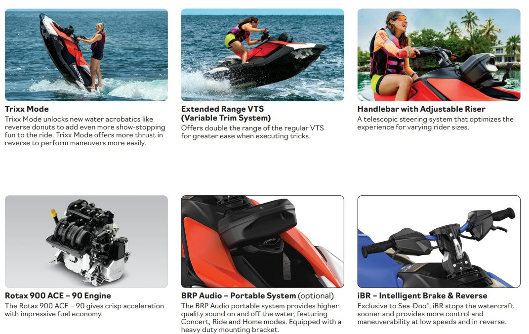 The lightweight and nimble build of the Spark Trixx 3Up provides agility and ease of control, perfect for executing tricks and exploring the waters with confidence. Engineered for maximum stability and comfort, the watercraft also includes adjustable handlebars and a variety of customization options to cater to every rider’s preference.